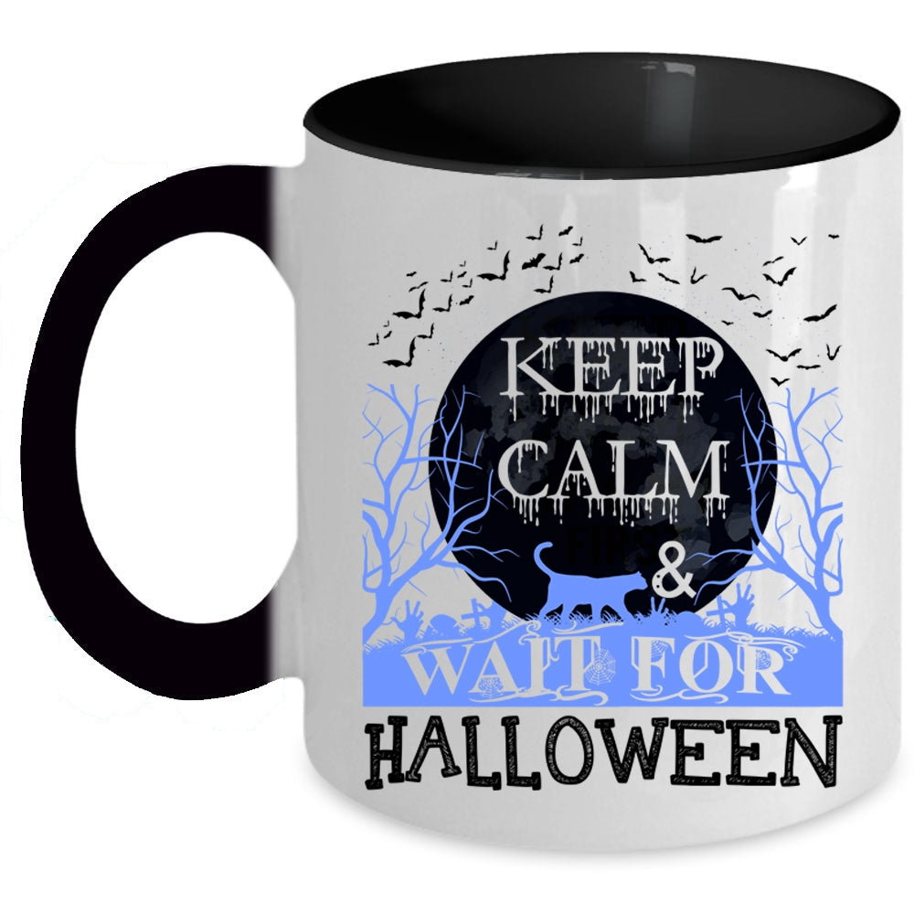 Funny Halloween Coffee Mug, Keep Calm And Wait For Halloween Accent Mug