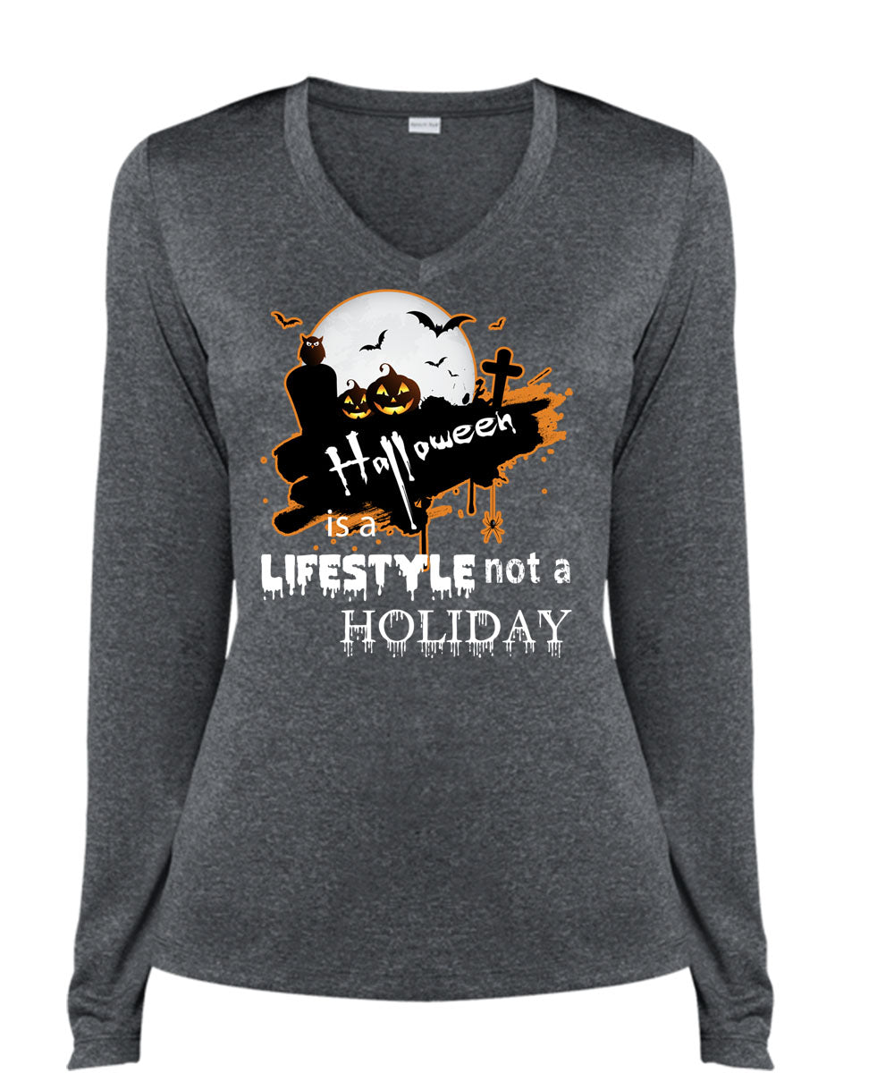Halloween Is A Lifestyle Not A Holiday T Shirt, I Love You Pumpkin T Shirt, Cool Shirt (Ladies LS Heather V-Neck)