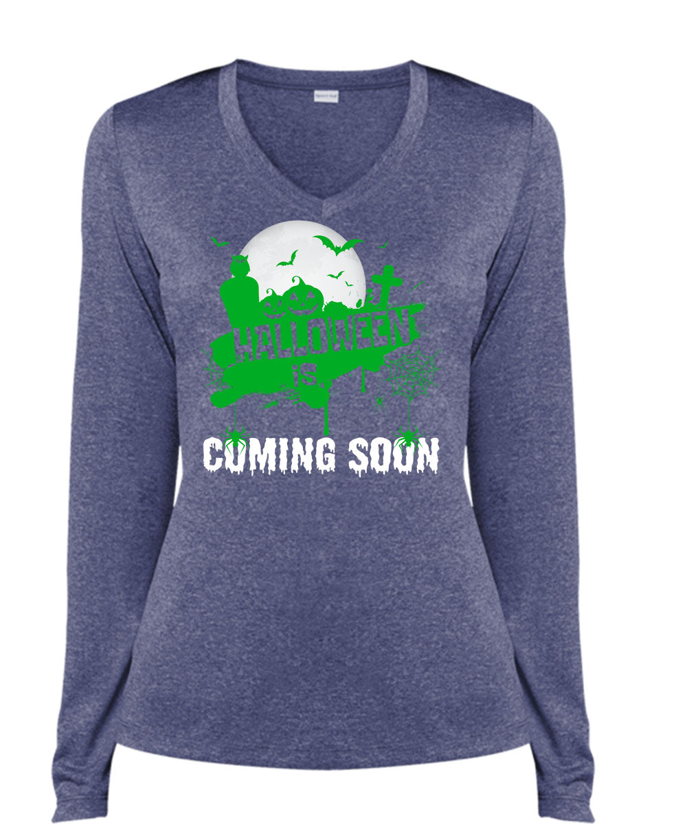 Halloween Is Coming Soon T Shirt, I Love You Pumpkin T Shirt, Cool Shirt (Ladies LS Heather V-Neck)