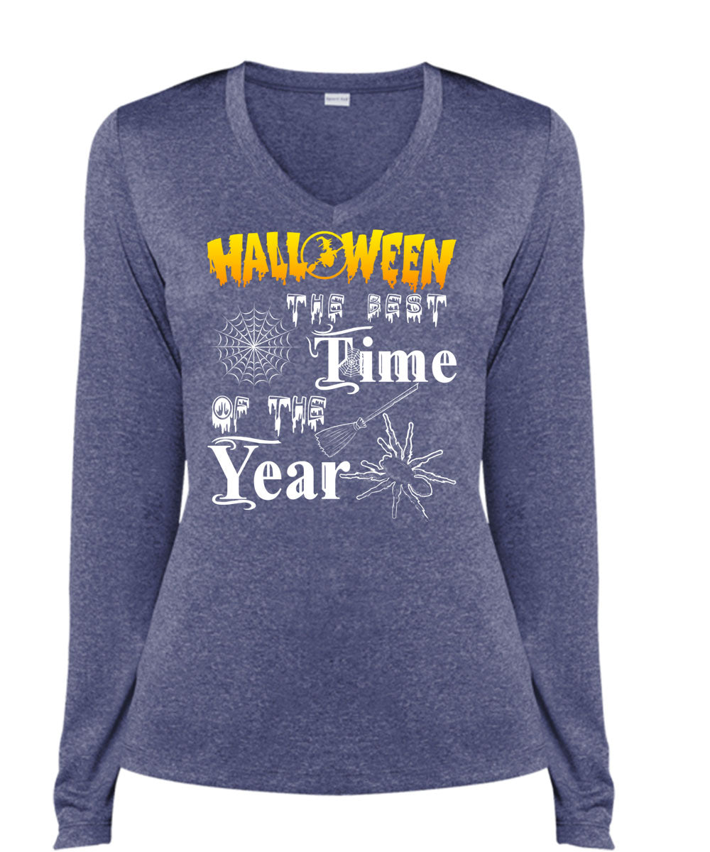 Halloween The Best Time Of The Year T Shirt, I Love You Pumpkin T Shirt, Cool Shirt (Ladies LS Heather V-Neck)