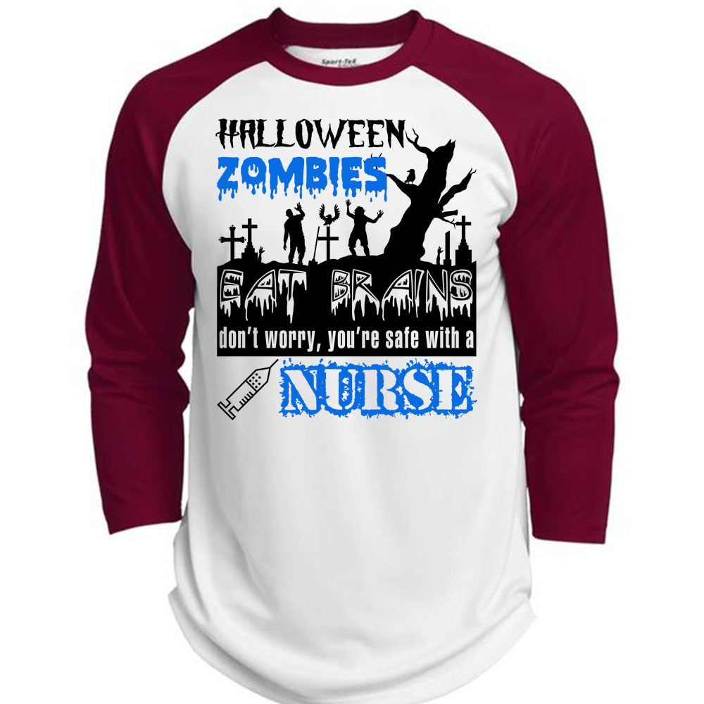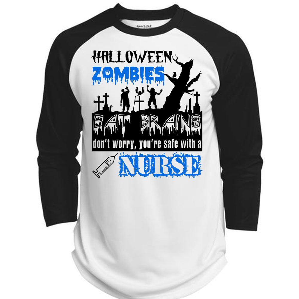 Halloween Zombies Eat Brains T Shirt, Wait For Halloween T Shirt, Awesome T-Shirts (Polyester Game Baseball Jersey)