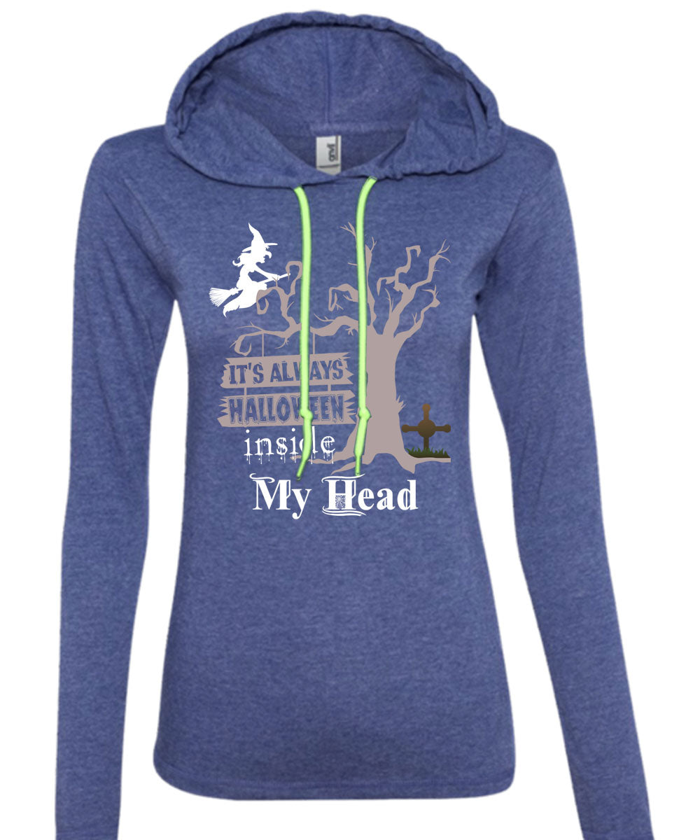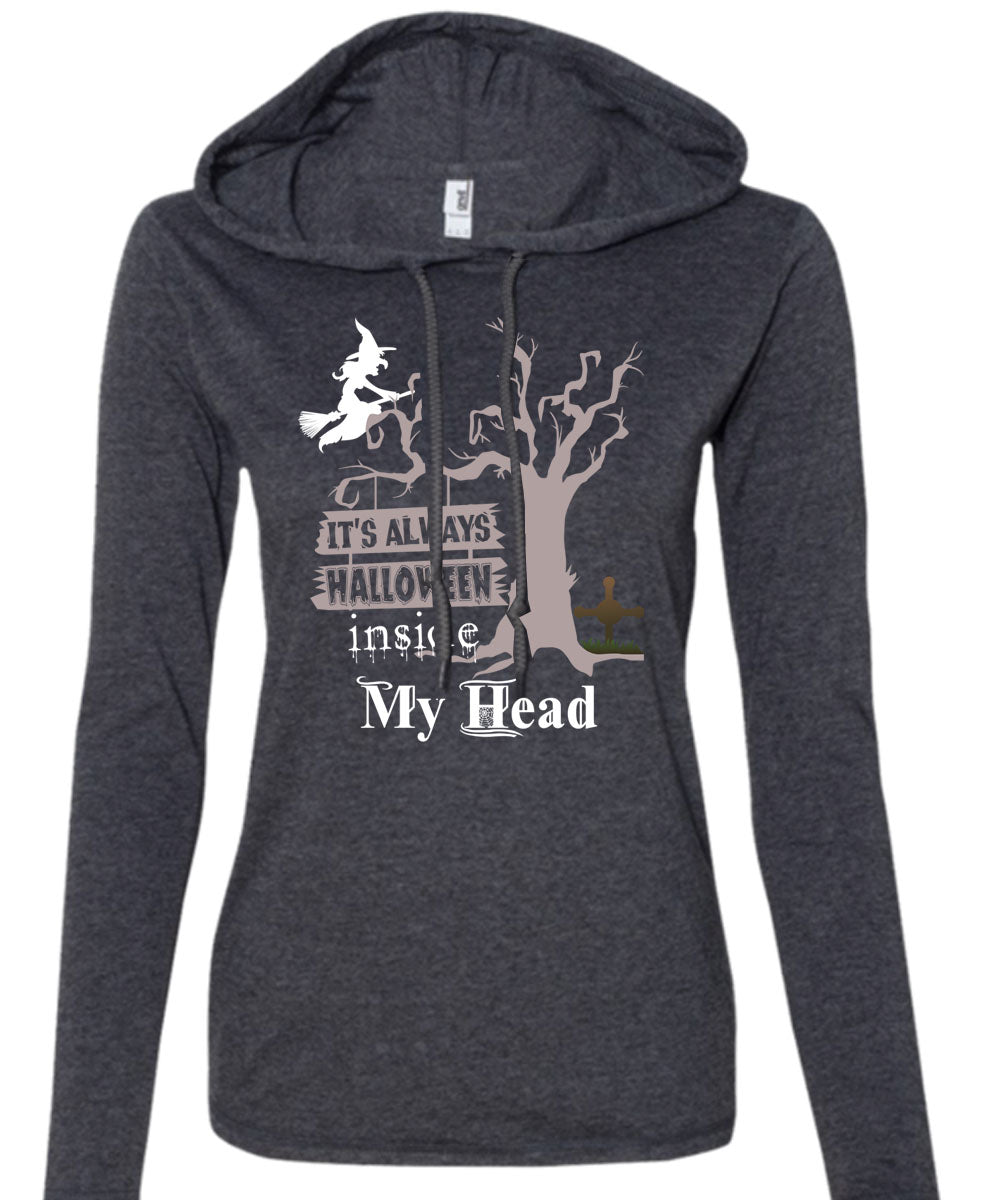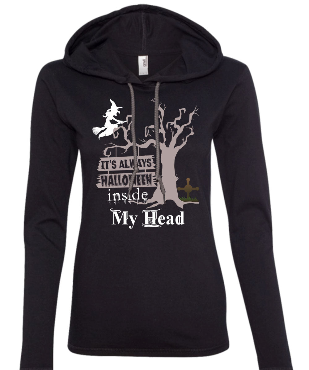 It's Always Halloween Inside My Head T Shirt, I Love You Pumpkin T Shirt (Anvil Ladies Ringspun Hooded)