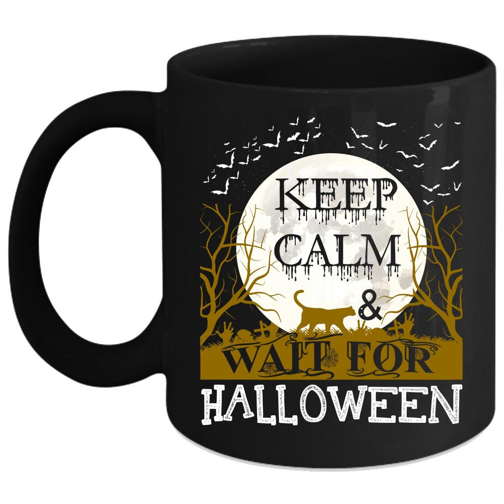 Keep Calm And Wait For Halloween Coffee Mug, Funny Halloween Coffee Cup