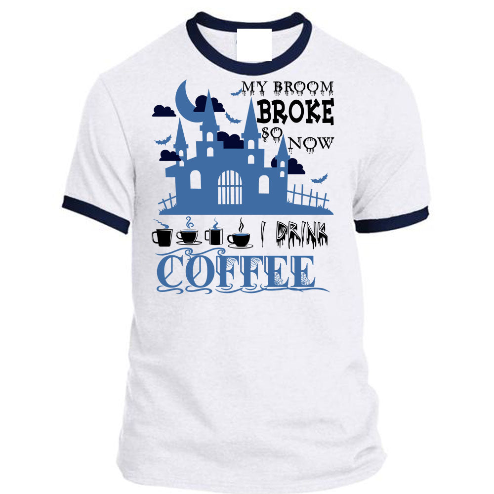 My Broom Broke So Now I Drink Coffee T Shirt, Wait For Halloween T Shirt, Awesome T-Shirts