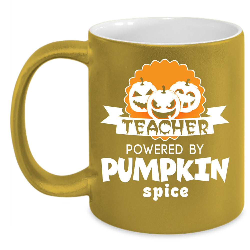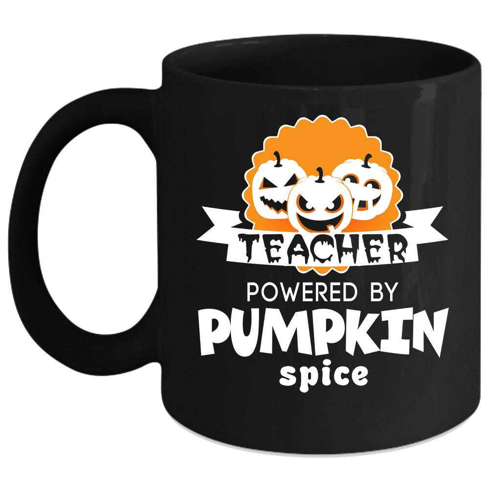 Teacher Powered By Pumpkin Spice Coffee Mug, Cool Halloween Coffee Cup