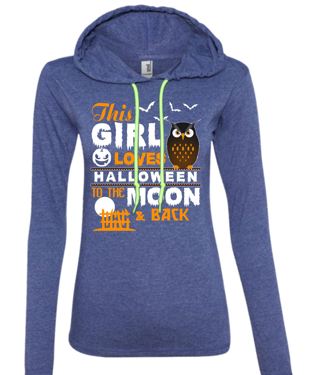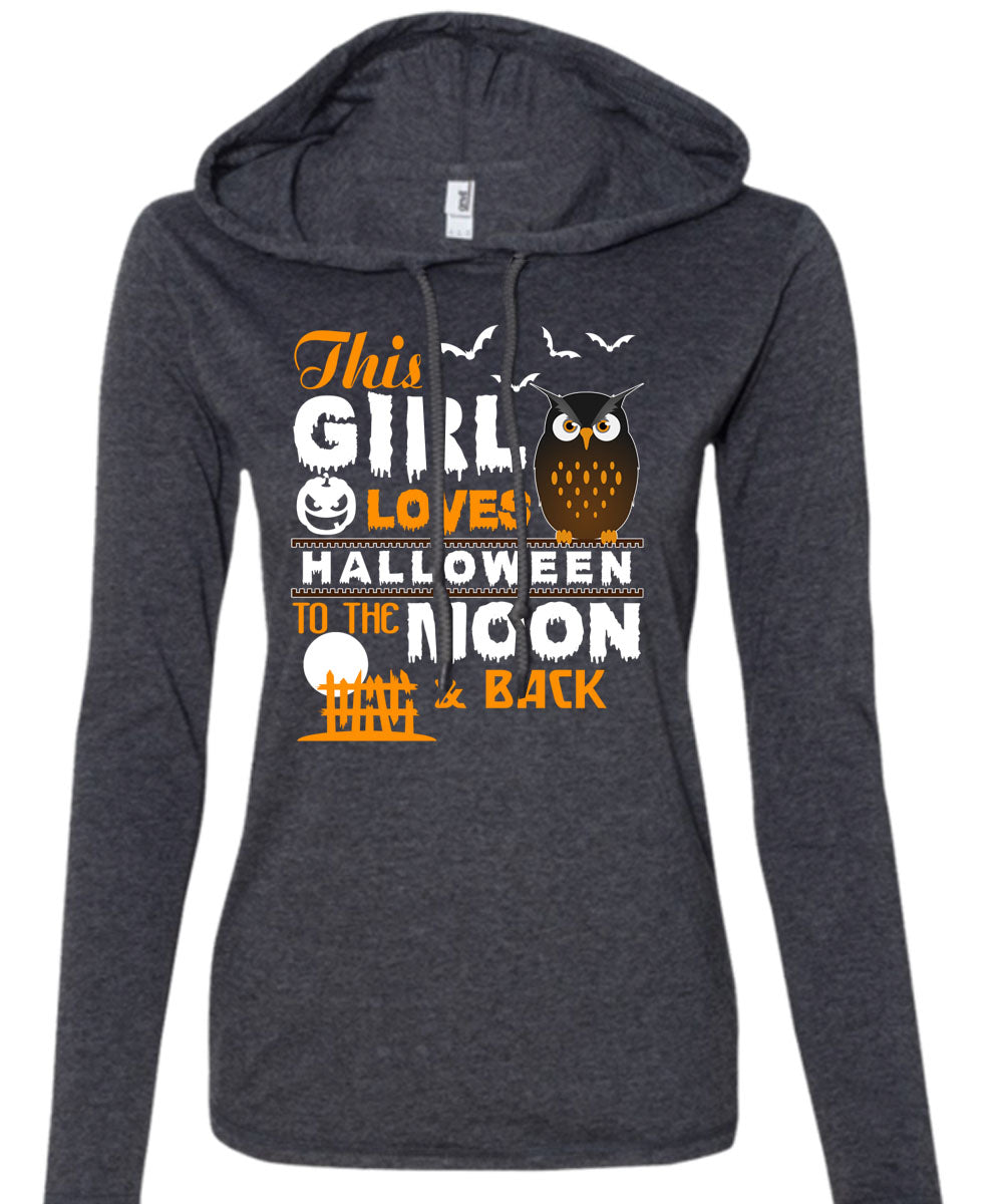This Girl Loves Halloween To The Moon And Back T Shirt, I Love You Pumpkin T Shirt (Anvil Ladies Ringspun Hooded)