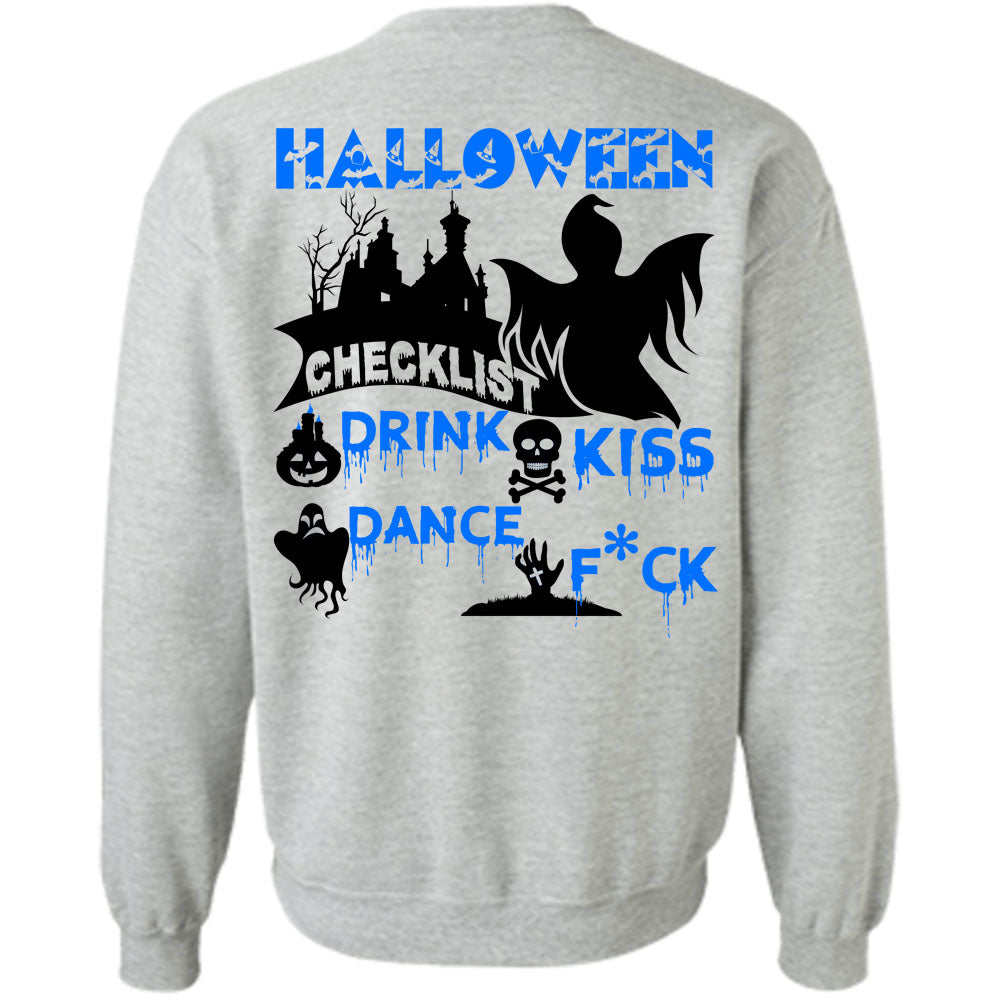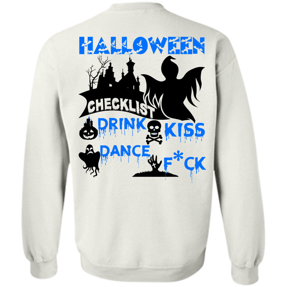 Wait For Halloween T Shirt, Halloween Checklist Drink Kiss Dance Sweatshirt