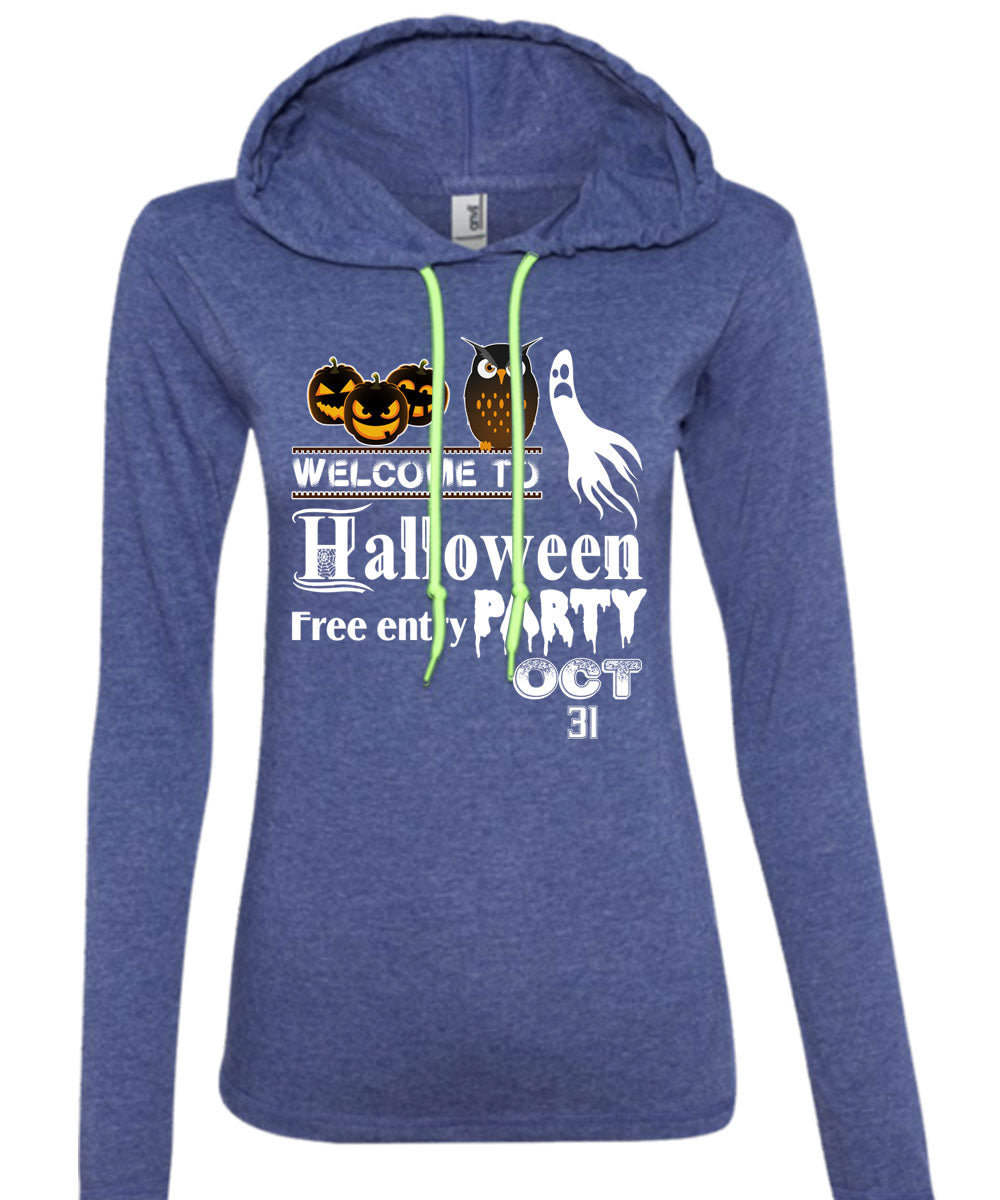 Welcome To Halloween Free Entry Party Oct 31 T Shirt, I Love You Pumpkin T Shirt (Anvil Ladies Ringspun Hooded)