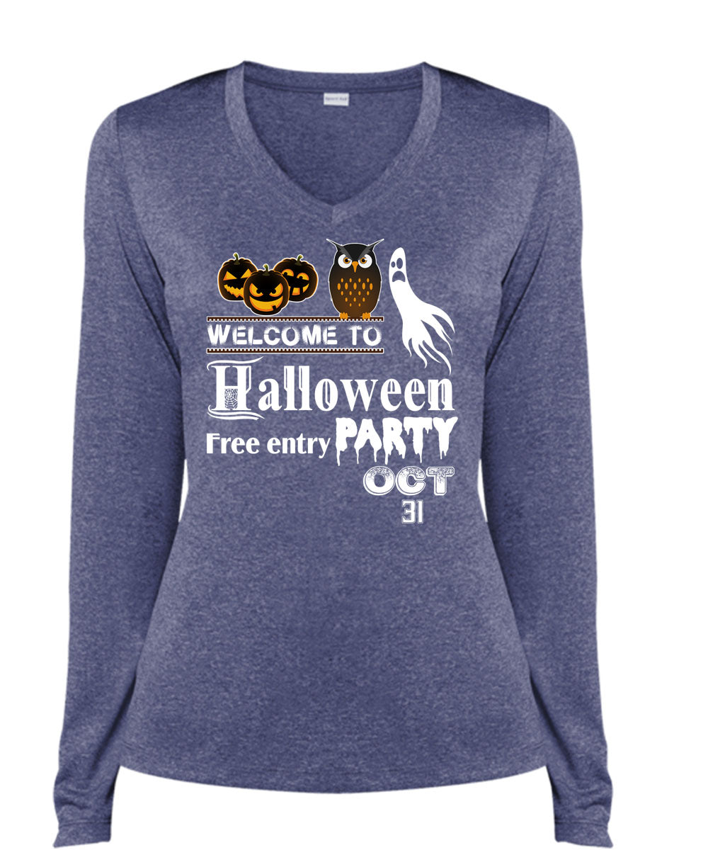 Welcome To Halloween Free Entry Party Oct 31 T Shirt, I Love You Pumpkin T Shirt, Cool Shirt (Ladies LS Heather V-Neck)