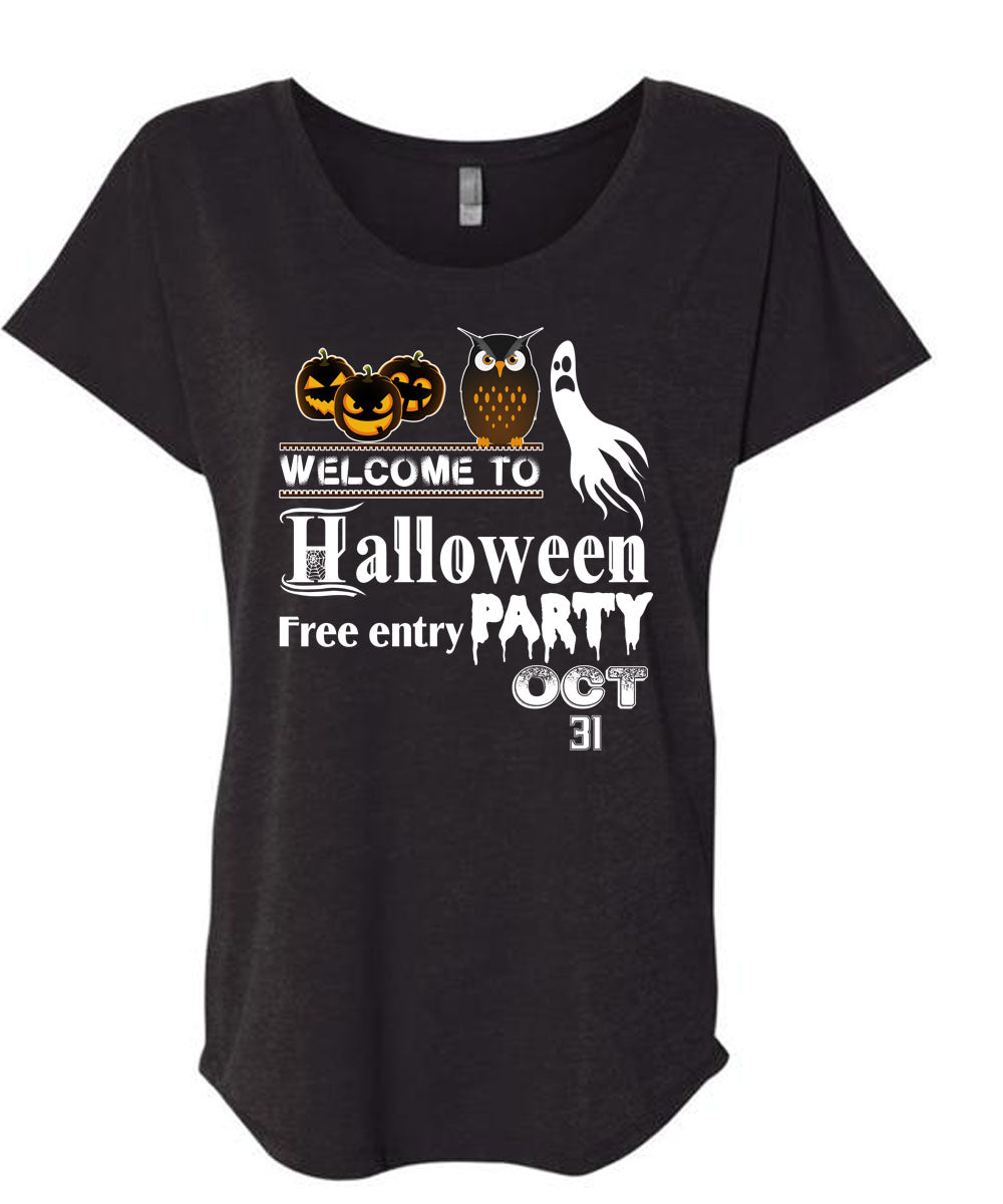 Welcome To Halloween Free Entry Party Oct 31 T Shirt, I Love You Pumpkin T Shirt, Cool Shirt (Ladies' Triblend Dolman Sleeve)