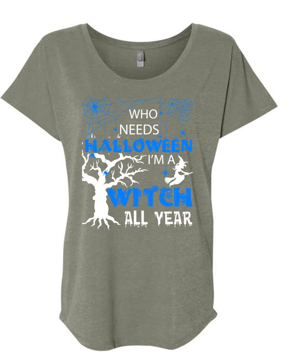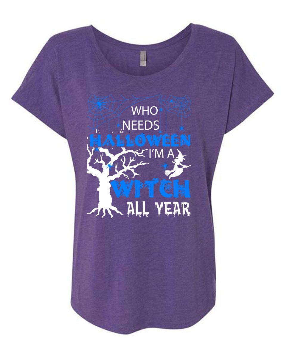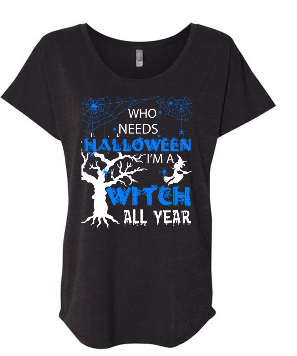Who Needs Halloween T Shirt, I'm A Witch All Year T Shirt, Cool Shirt (Ladies' Triblend Dolman Sleeve)