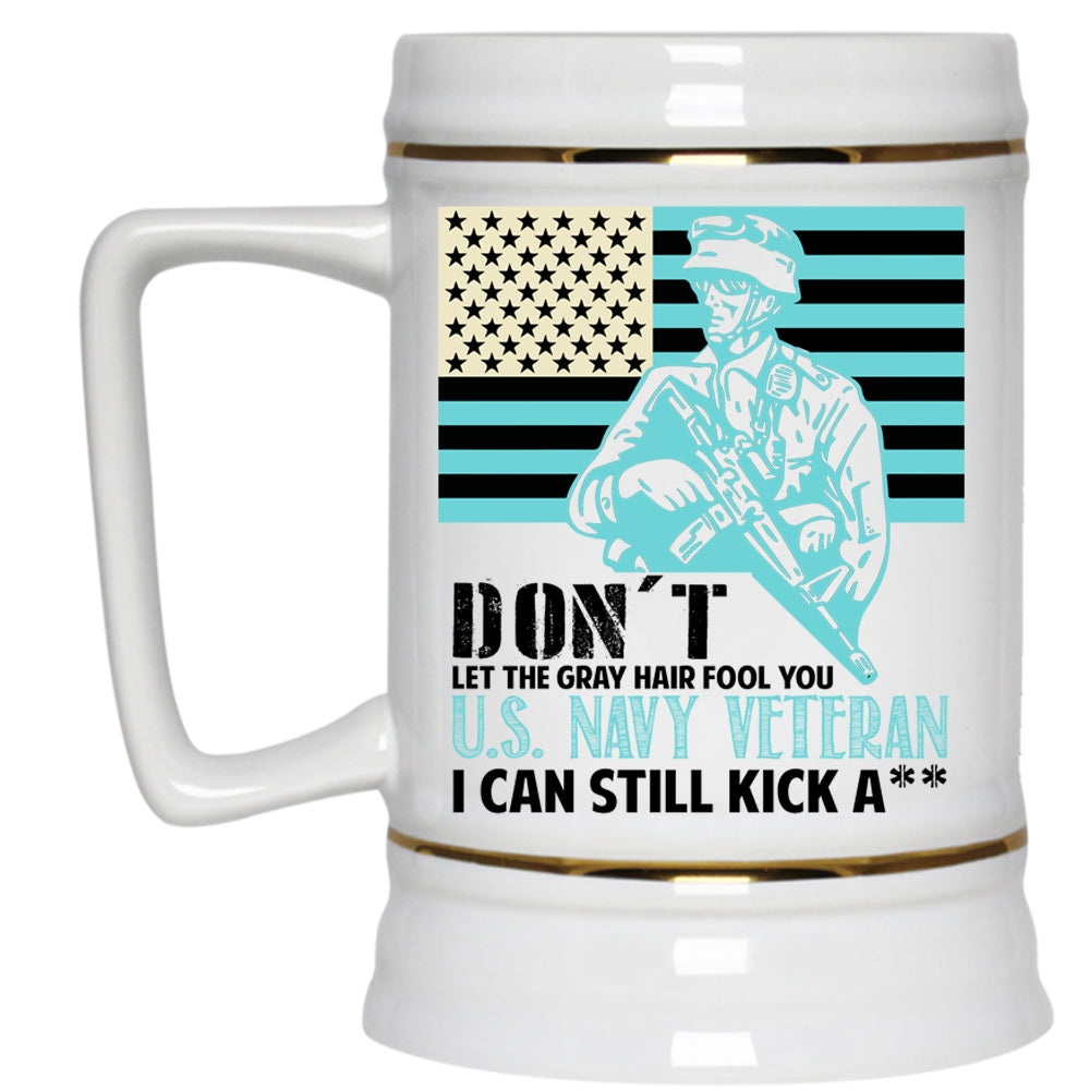 American Flag Beer Stein 22oz, U.S Navy Veteran Beer Mug