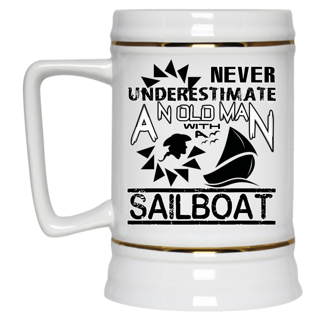 An Old Man With A Sailboat Cup, Funny Sailboat Mug (Beer Mug)