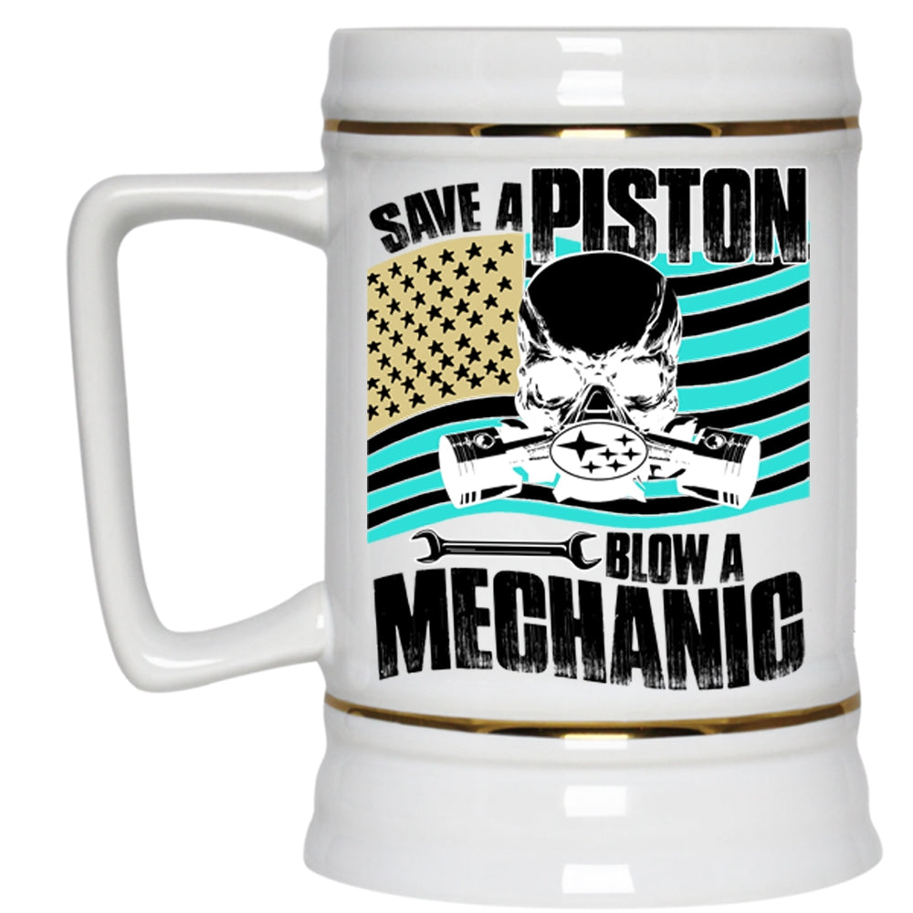 Awesome American Mechanic Beer Stein 22oz, Save A Piston Blow A Mechanic Beer Mug