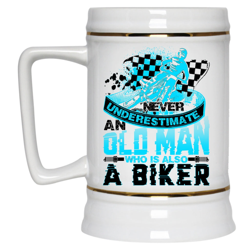 Awesome Gift For Grandfather Beer Stein 22oz, An Old Man Is A Biker Beer Mug