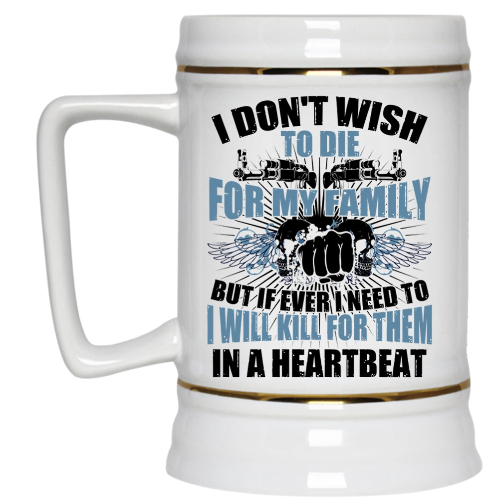 Awesome Gift For Gunner Beer Stein 22oz, I Love My Family Beer Mug