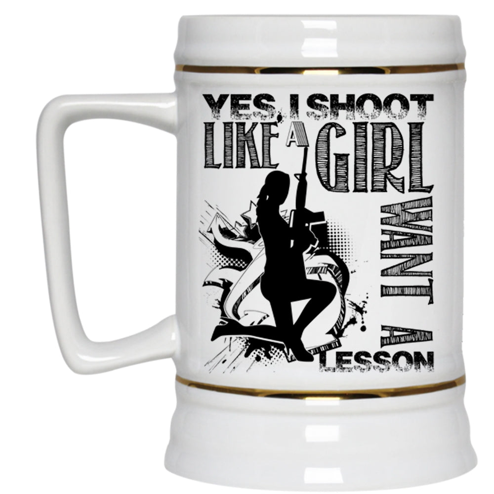 Awesome Girls Beer Stein 22oz, I Shoot Like A Girl Want A Lesson Beer Mug