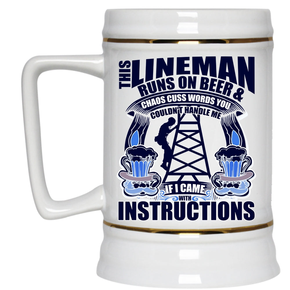 Awesome Linemans Beer Stein 22oz, This Lineman Runs On Beer Beer Mug