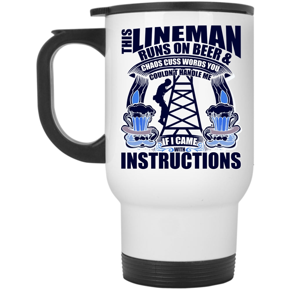 Awesome Linemans Travel Mug, This Lineman Runs On Beer Mug