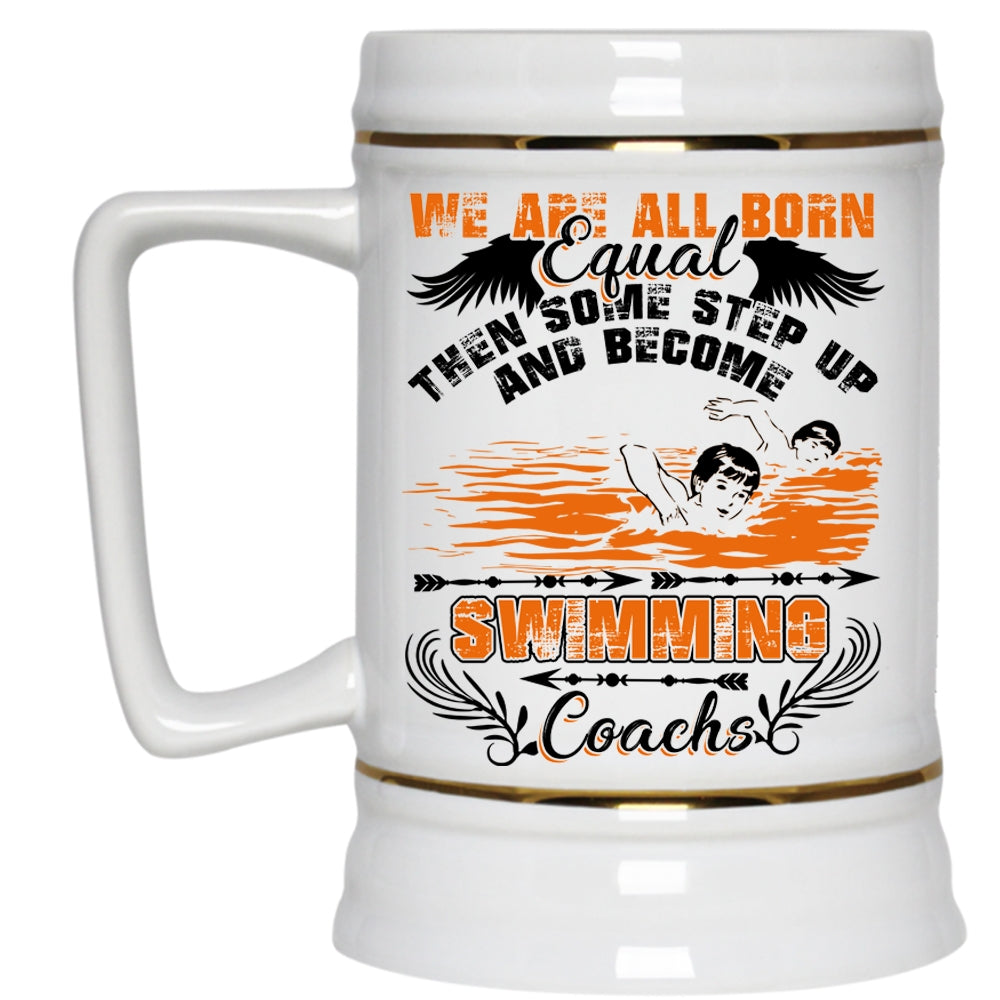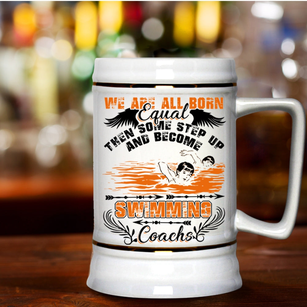 Become Swimming Coachs Beer Stein 22oz, We Are All Born Equal Beer Mug