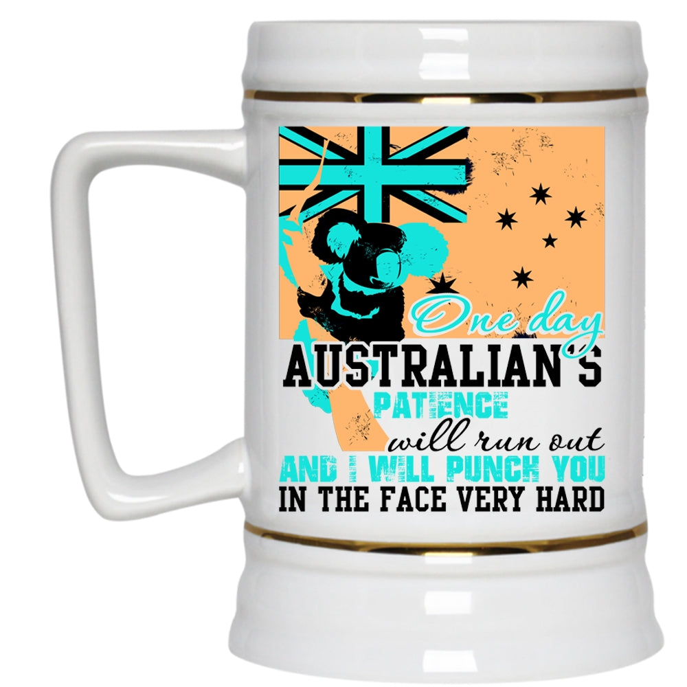 Cool Australian Beer Stein 22oz, One Day Australian's Patience Will Run Out Beer Mug