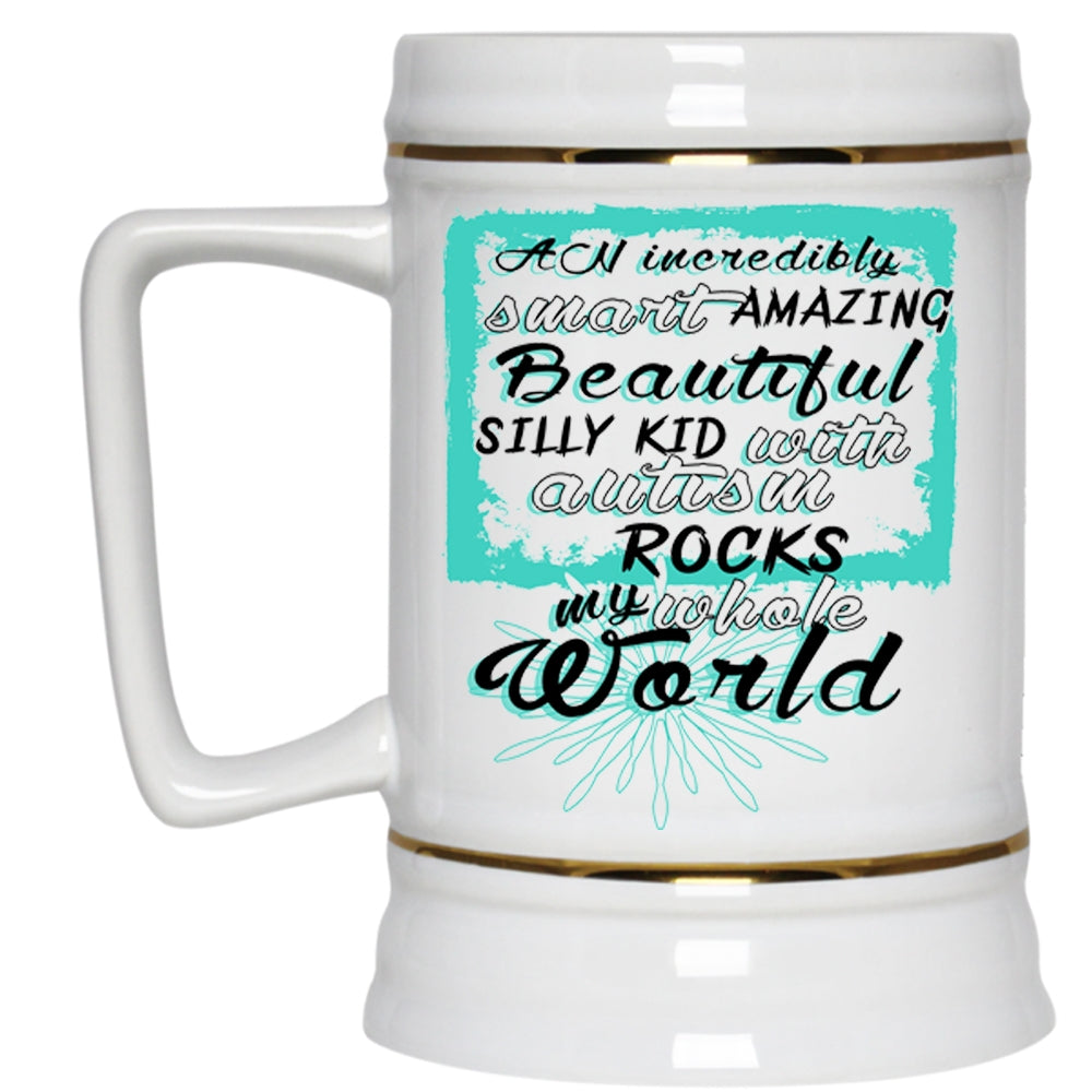 Cool Autism Mom Beer Stein 22oz, Autism Rocks My World Beer Mug
