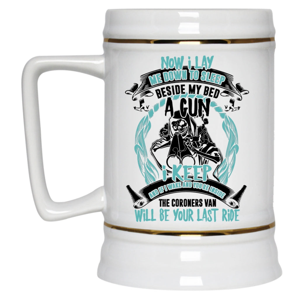 Cool Beer Stein 22oz, Now I Lay Me Down To Sleep Beside My Bed A Gun Beer Mug