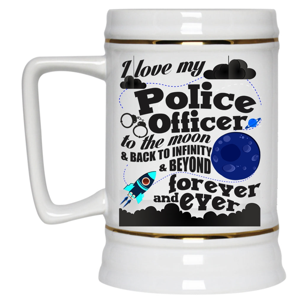 Cool Couple Beer Stein 22oz, I Love My Police Officer To The Moon And Back Beer Mug