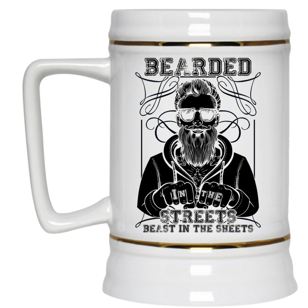 Cool Gift For Bearded Men Beer Stein 22oz, Bearded In The Streets Beer Mug
