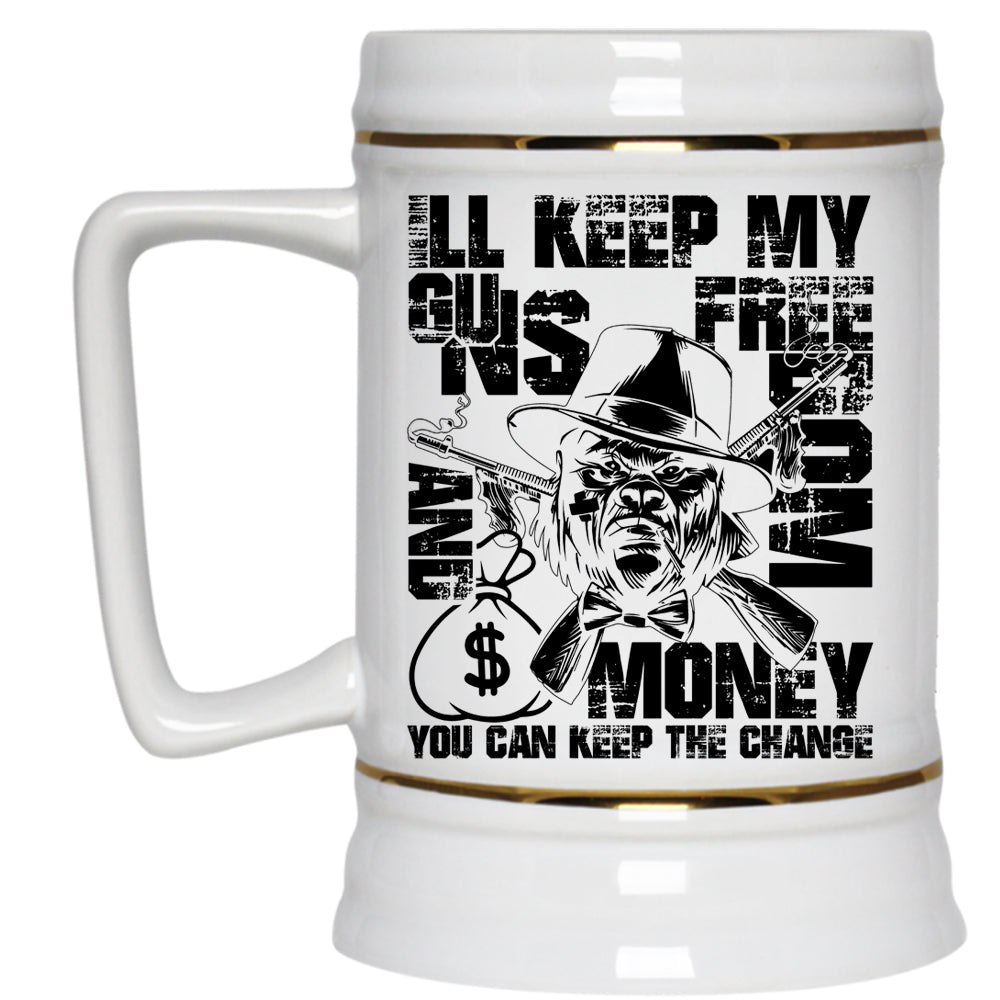 Cool Gift For Gunner Beer Stein 22oz, My Guns Freedom And Money Beer Mug