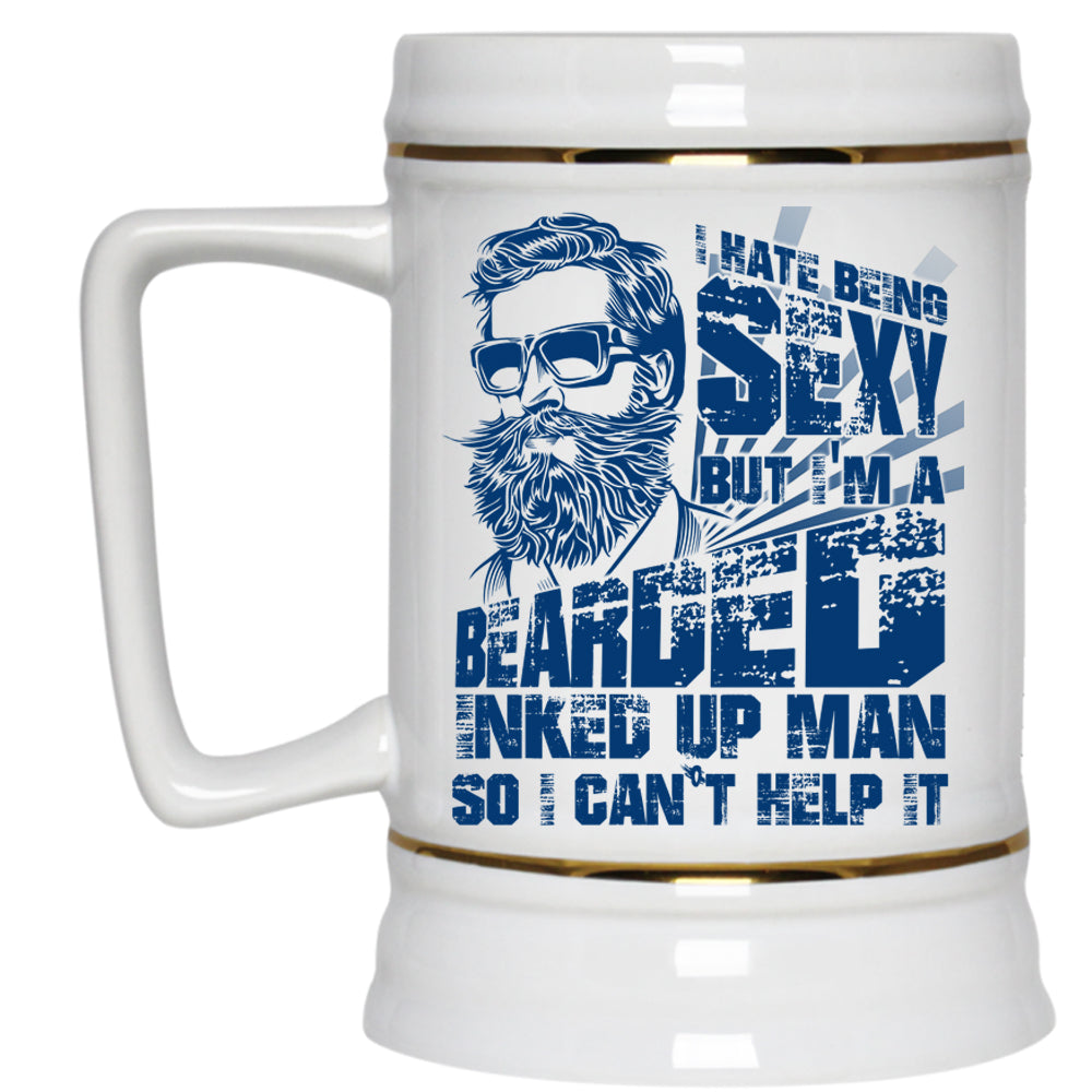 Cool Gift For My Dad Beer Stein 22oz, I'm A Bearded Inked Up Man Beer Mug