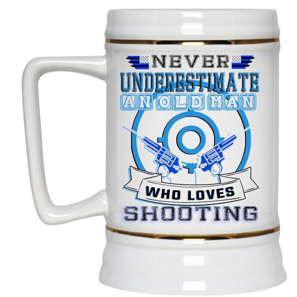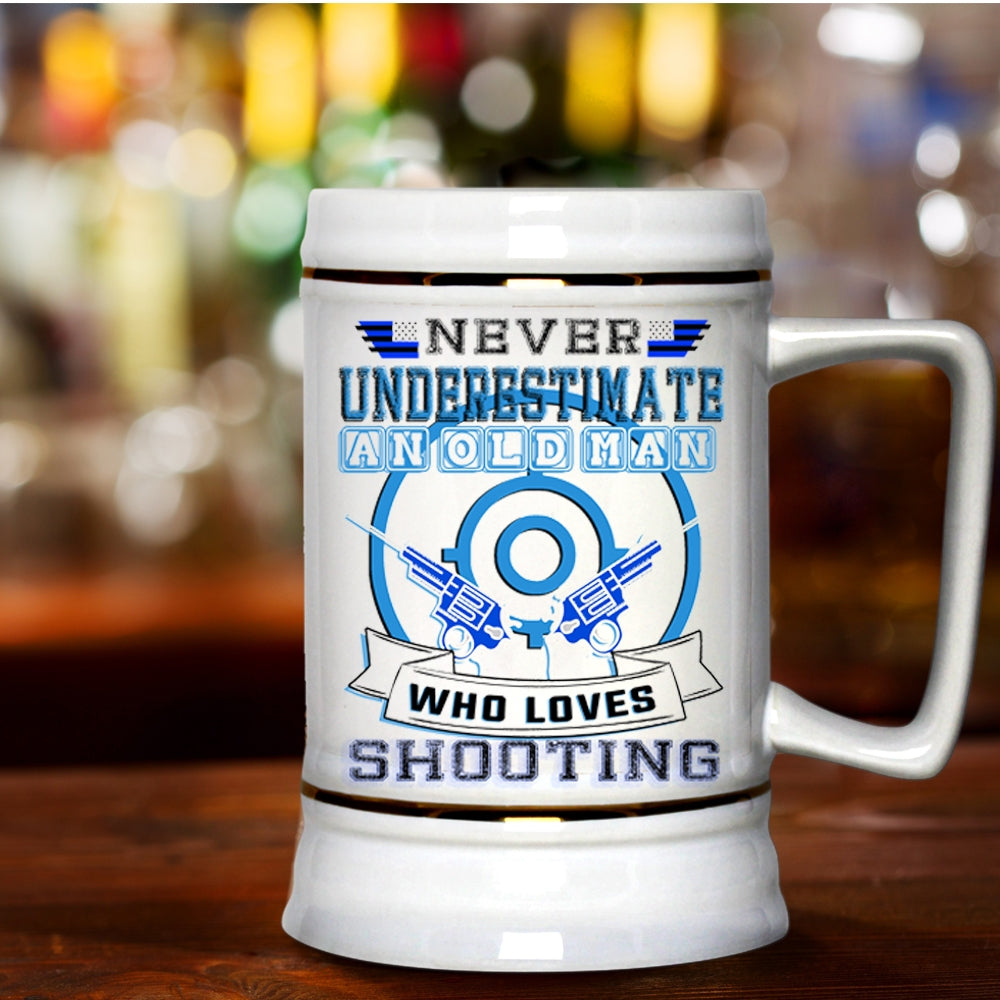 Cool Grandfather Beer Stein 22oz, Old Man Loves Shooting Beer Mug