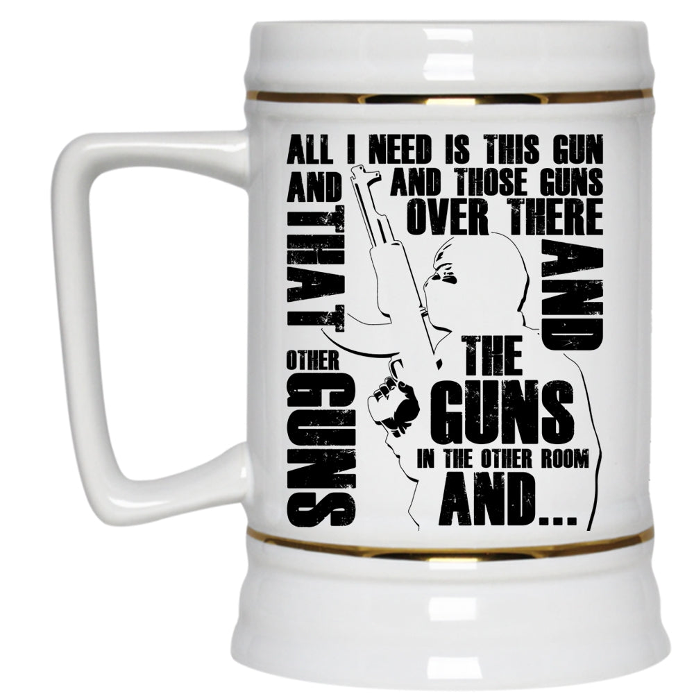 Cool Gunner Beer Stein 22oz, All I Need Is This Gun And Those Guns Beer Mug