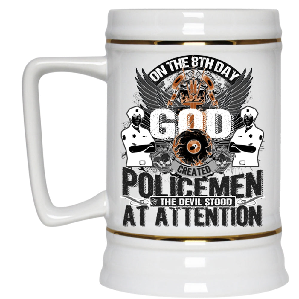 Cool Policemen Beer Stein 22oz, On The 8th Day God Created Policemen Beer Mug
