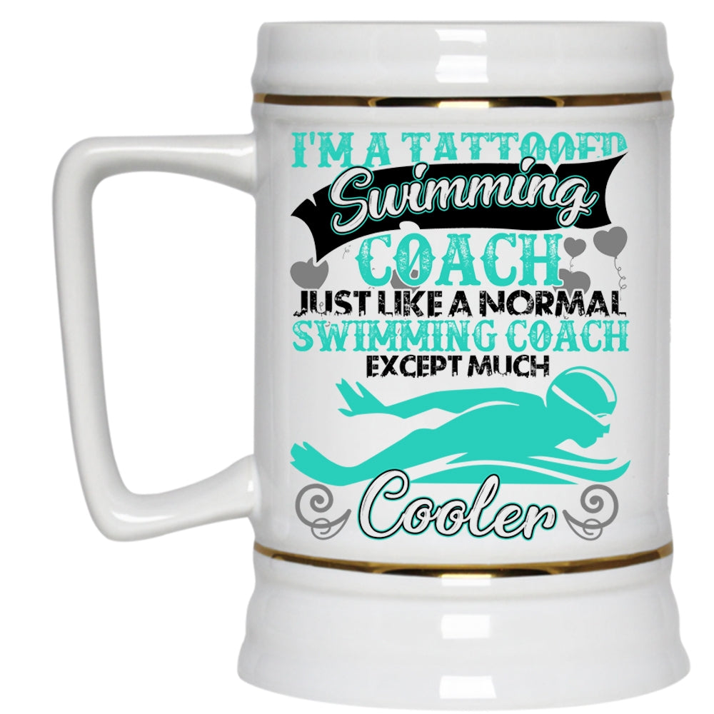 Cool Swimming Coach Beer Stein 22oz, I'm A Tattooed Swimming Coach Beer Mug