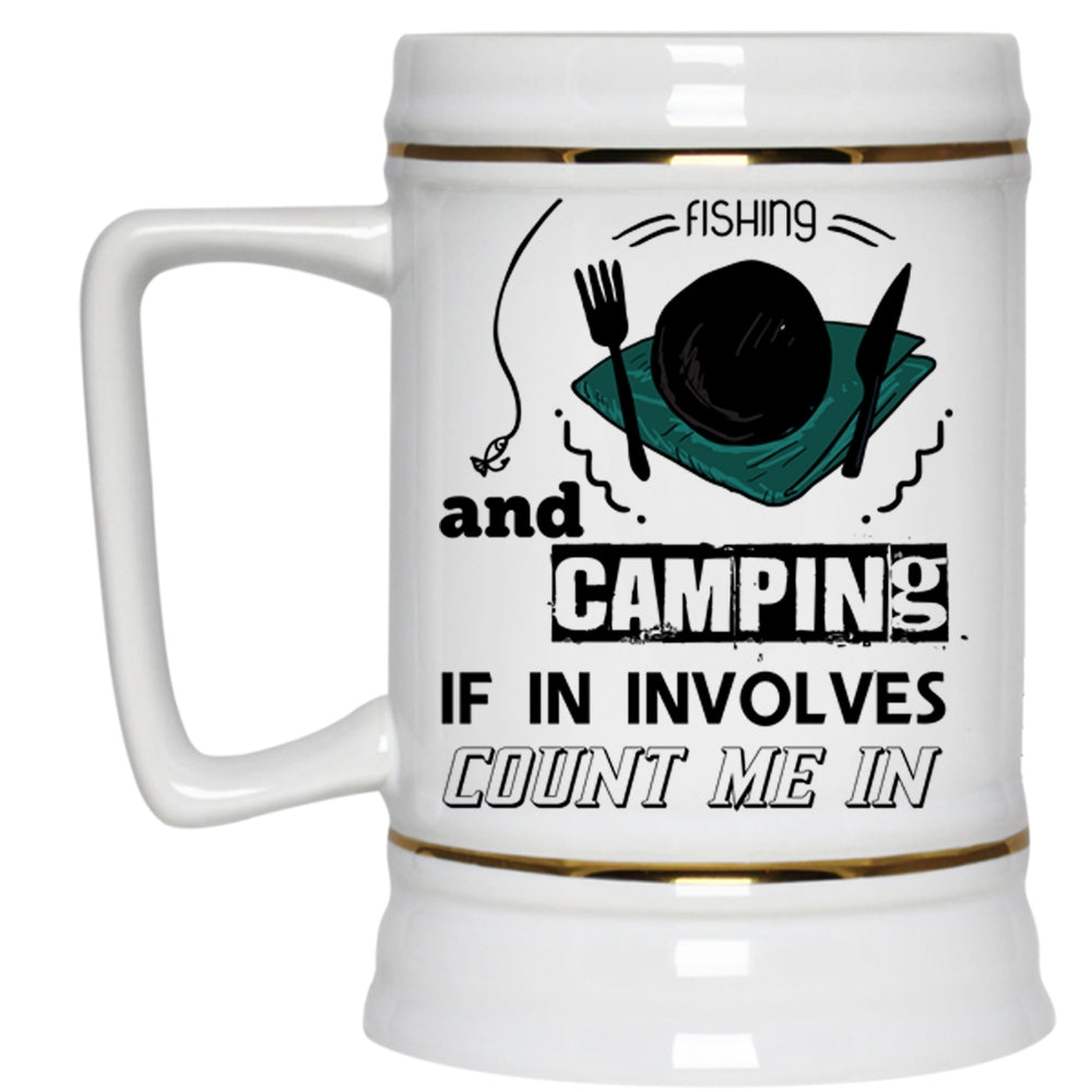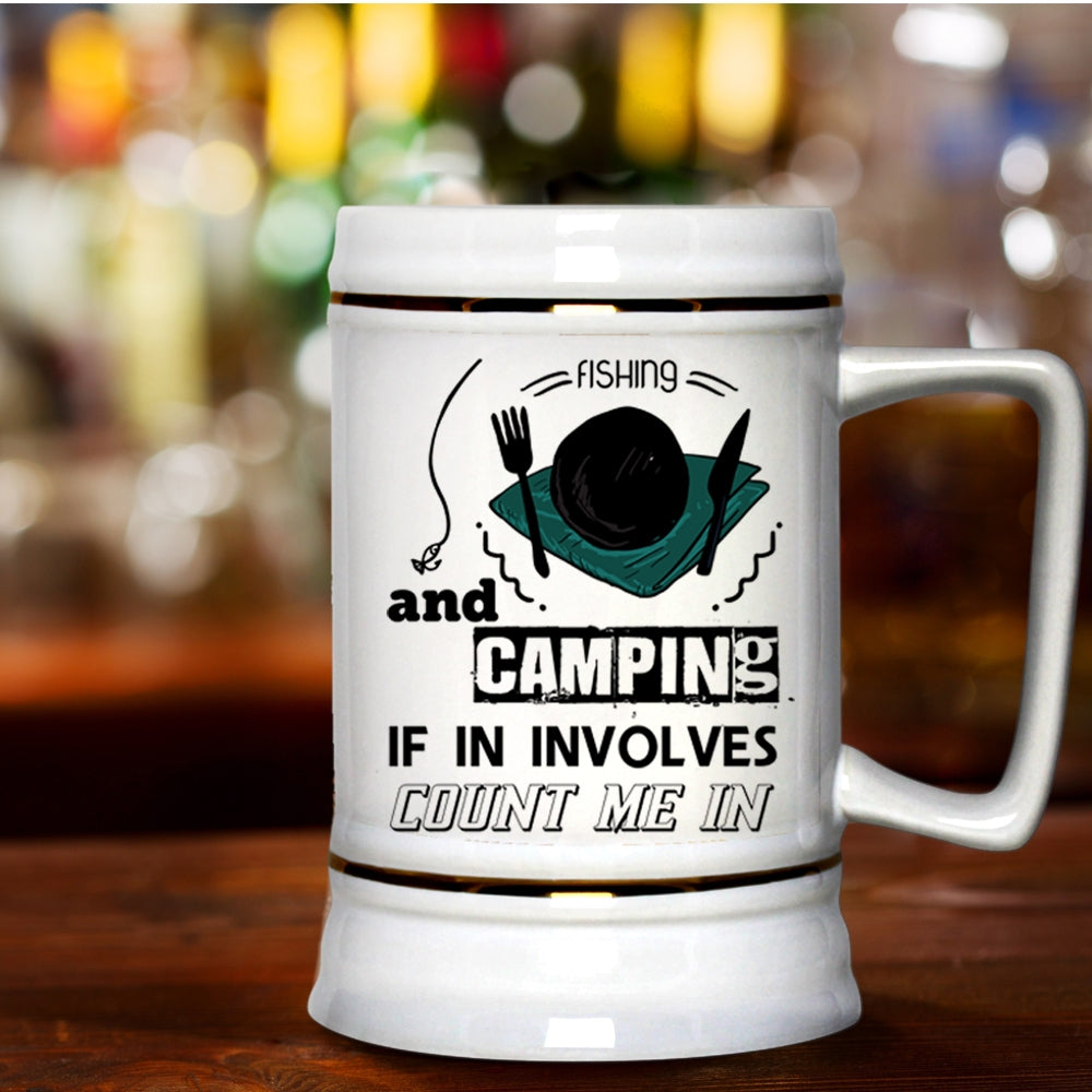 Count Me In Beer Stein 22oz, Fishing And Camping Beer Mug