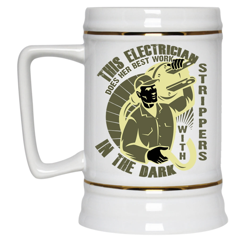 Cute Electricians Beer Stein 22oz, This Electrician Does Her Best Work Beer Mug