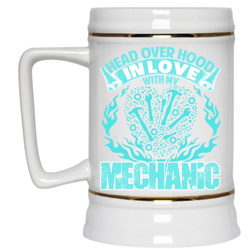 Cute Mechanic Beer Stein 22oz, Head Over Hood In Love With My Mechanic Beer Mug