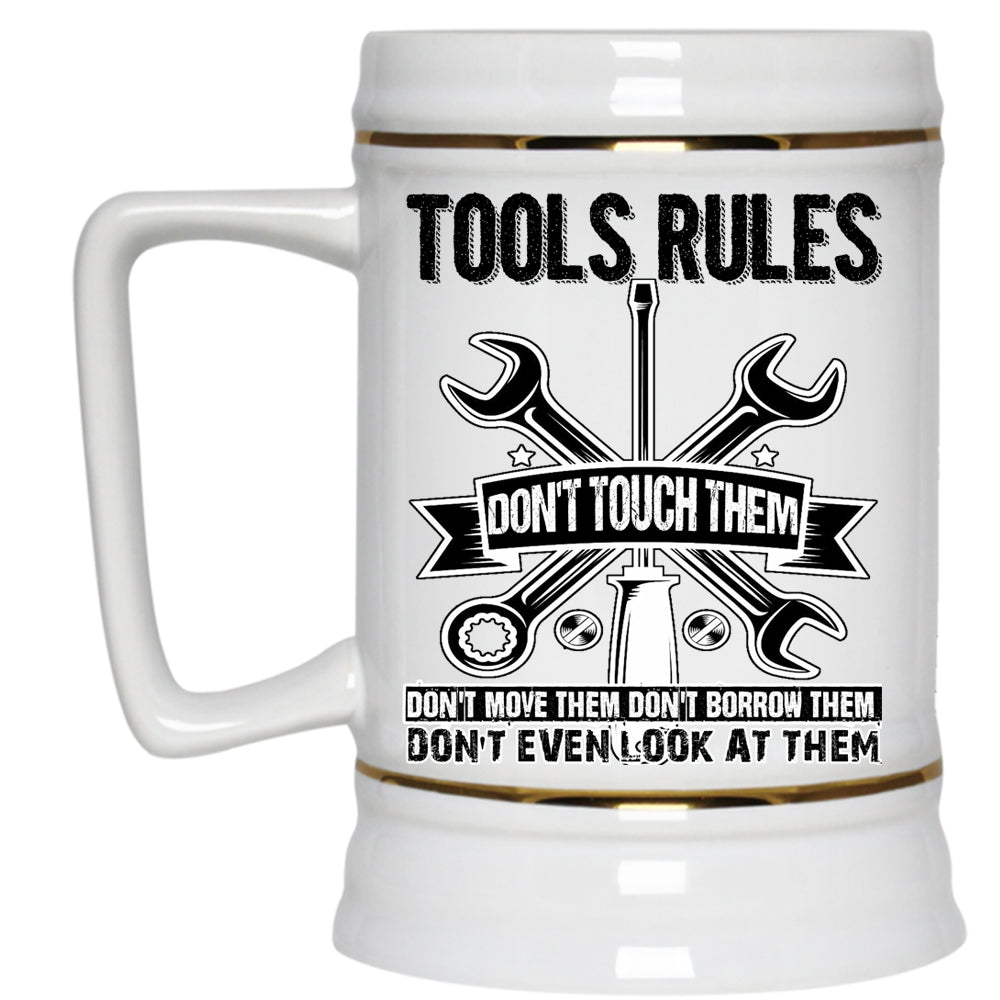 Don't Touch Them Don't Move Them Beer Stein 22oz, Tools Rules Beer Mug