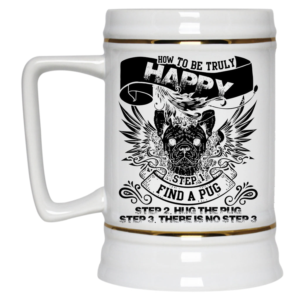 Find A Pug Hug The Pug Beer Stein 22oz, How To Be Truly Happy Beer Mug
