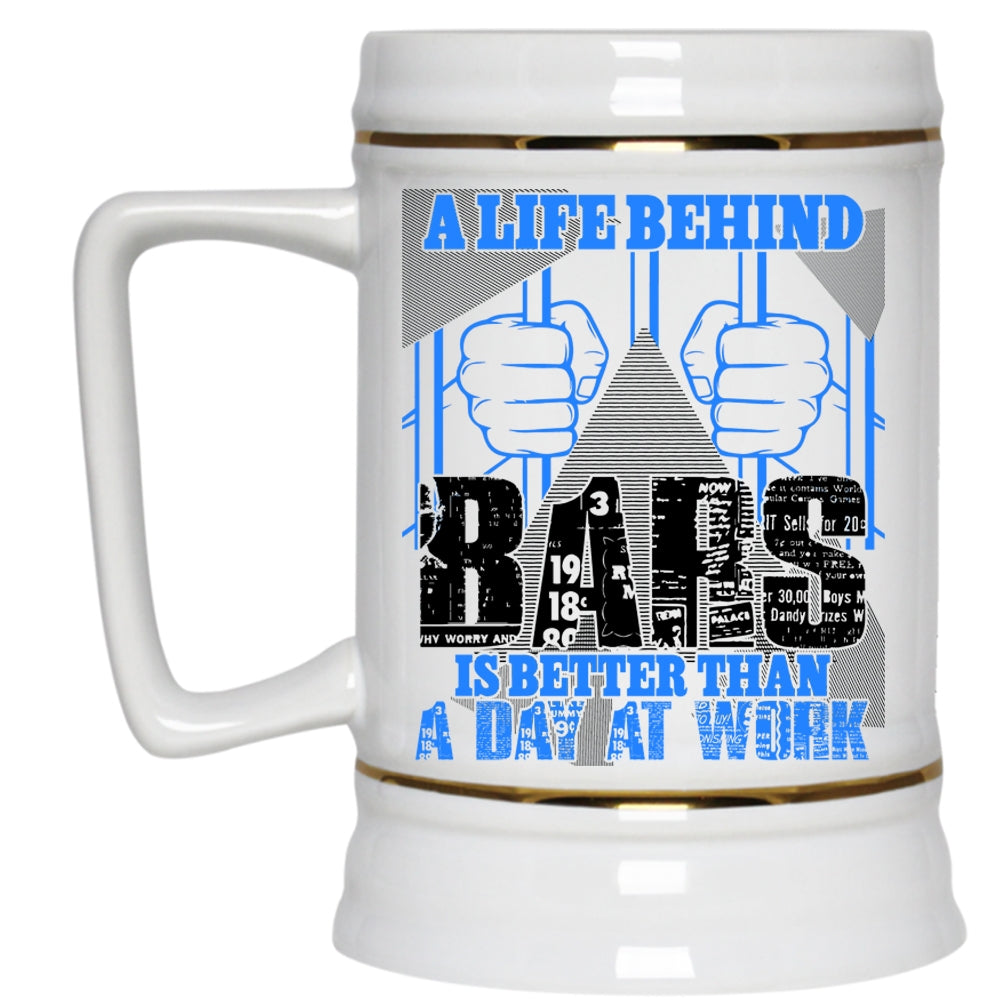 Funny Beer Stein 22oz, A Life Behind Bars Is Better Than A Day At Work Beer Mug