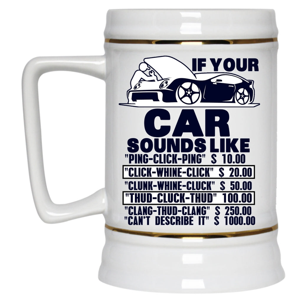Funny Car Mechanics Beer Stein 22oz, If Your Car Sounds Like Beer Mug