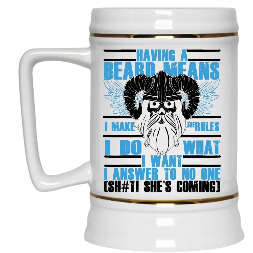 Funny Gift For Bearded Men Beer Stein 22oz, Having A Beard Means I Make The Rules Beer Mug