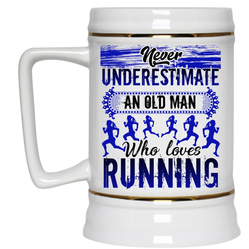 Funny Gift For Grandpas Beer Stein 22oz, An Old Man Loves Running Beer Mug