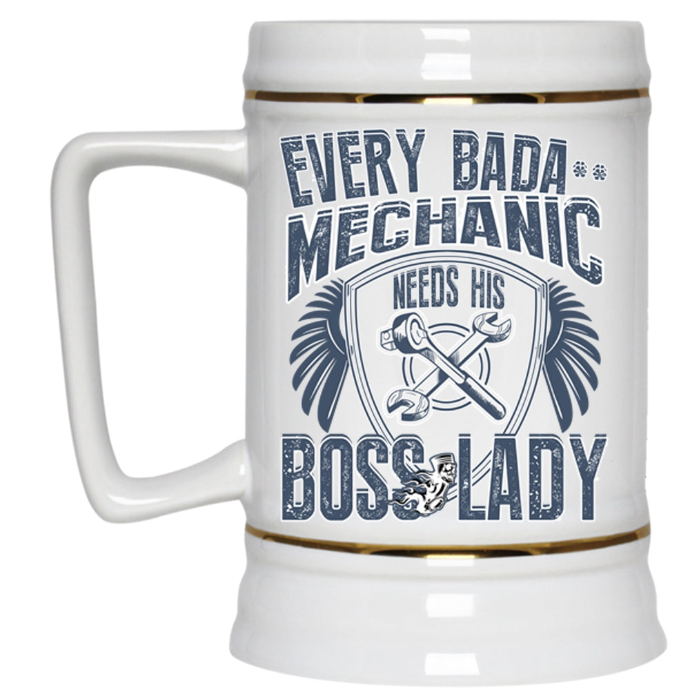 Funny Mechanics Beer Stein 22oz, Every Mechanic Needs His Boss Lady Beer Mug