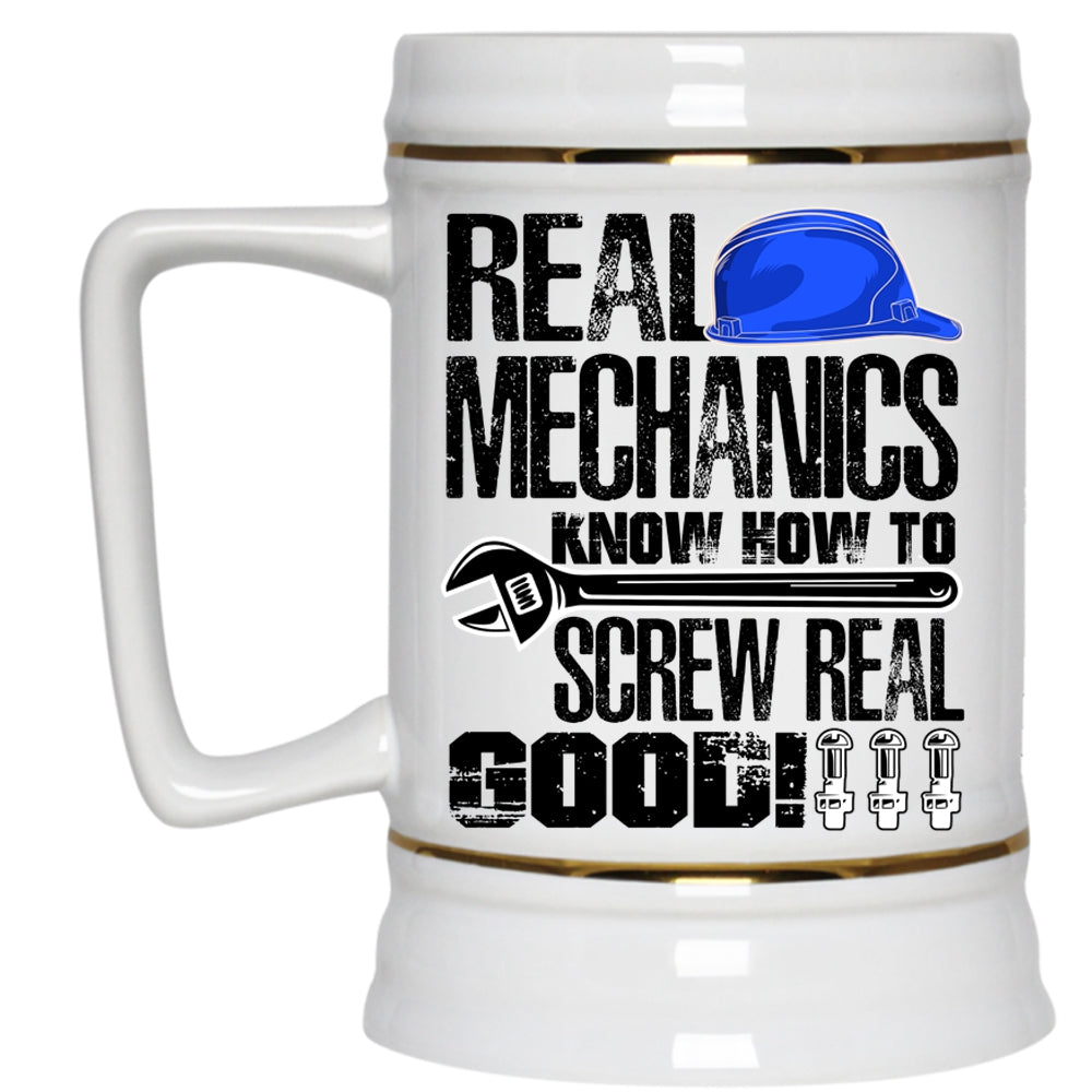 Funny Mechanics Beer Stein 22oz, Real Mechanics Know How To Screw Real Good Beer Mug