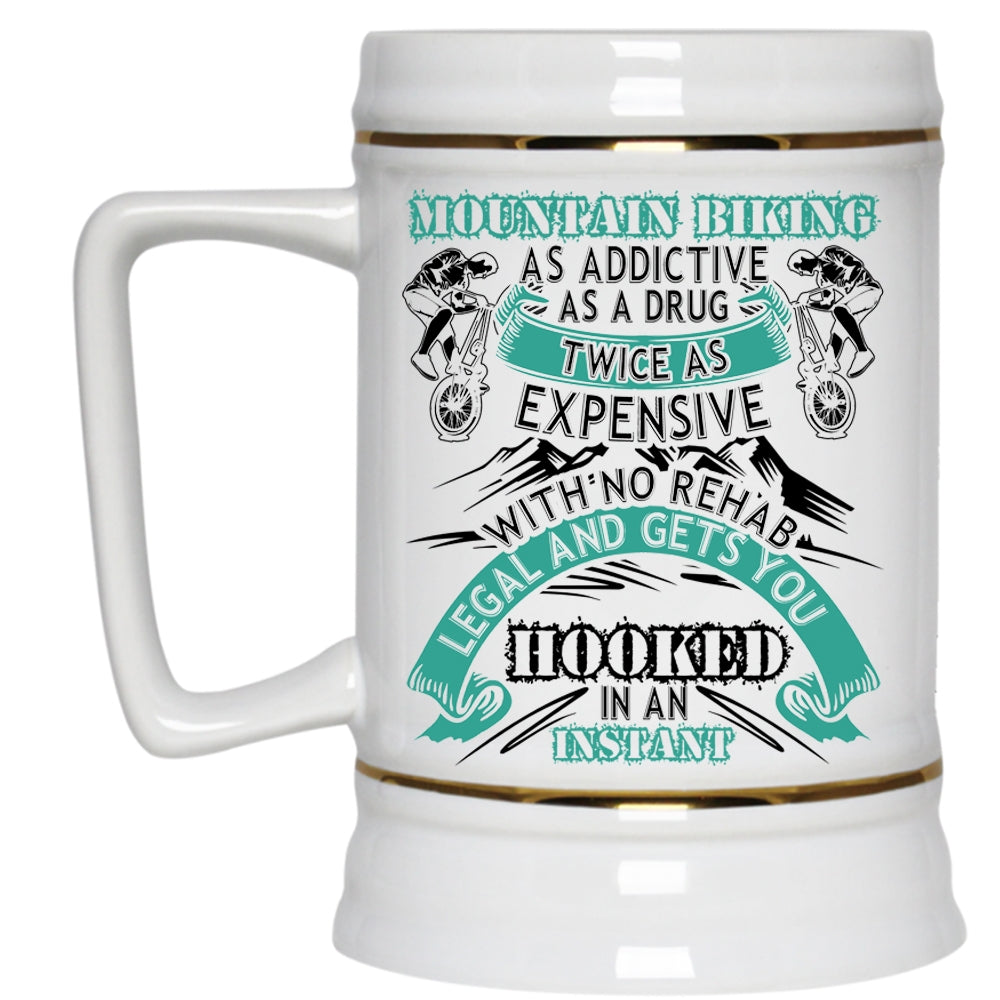 Funny Mountain Bikers Beer Stein 22oz, Mountain Biking As Addictive Beer Mug