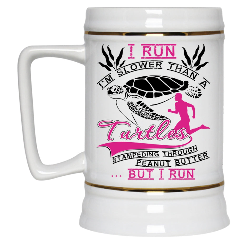 Funny Runners Beer Stein 22oz, I Run I'm Slower Than A Turtles Beer Mug