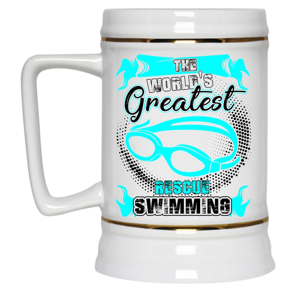 Funny Swimming Beer Stein 22oz, The World's Greatest Rescue Swimming Beer Mug
