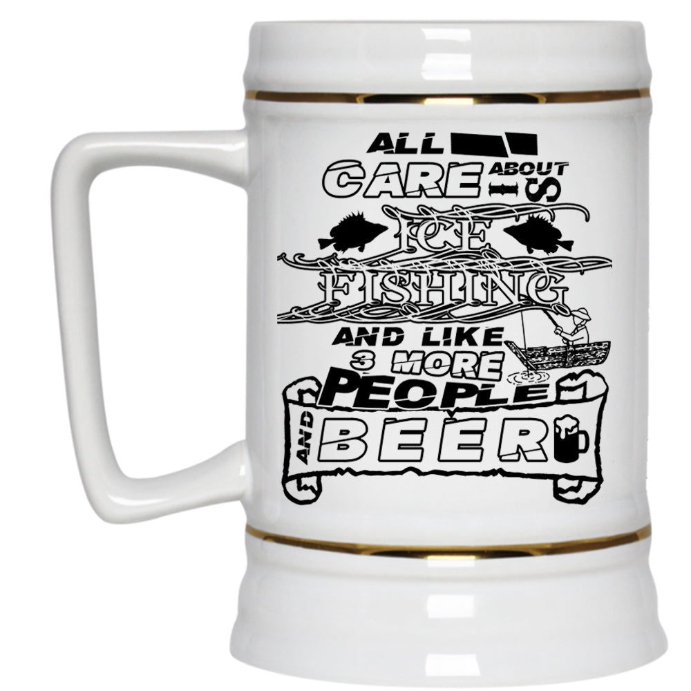 Gift For Fisher Beer Stein 22oz, All I Care About Is Ice Fishing Beer Mug